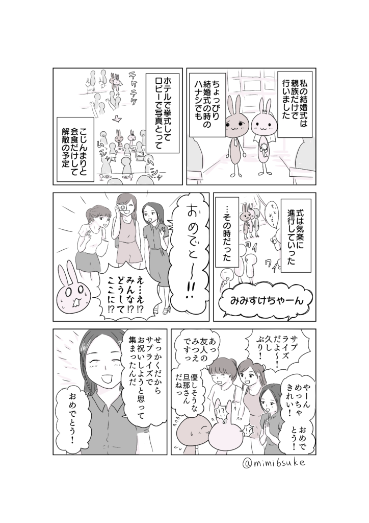 結婚式を親族だけにしたのも、友達が少ないし、グループの中であの子は呼んであの子は呼ばない、ができないから心から祝ってくれないであろう人も呼ぶのがいやだったのです。